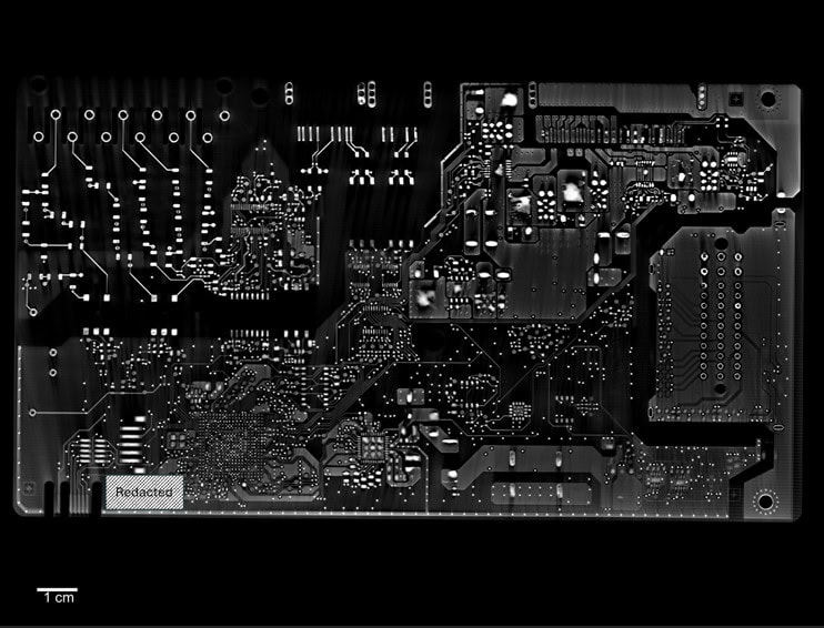 To expose this hidden complexity, GHB Intellect applies 2D X-ray imaging, high-resolution 3D CT scanning, and mechanical or chemical delayering. Figure 5 shows an example of a 2D CT-scan image of a master BMS board, illustrating how internal copper planes, vias, and routing patterns can be visualized non-destructively prior to physical delayering.